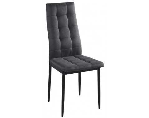 Oblíbená jídelní židle v kombinaci černého kovu a tmavě šedé látky. Sedací a opěrná část je doplněna výrazným dekorativním proševem.