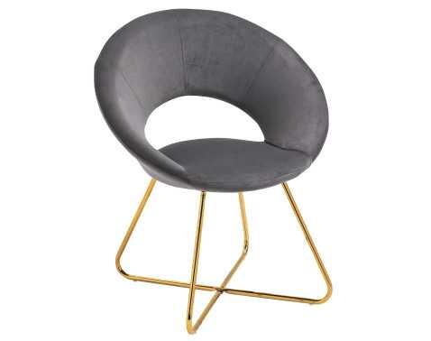 Elegantní jídelní židle na zlaté kovové podnoži působí luxusně. Zaoblený design poskytuje příjemné sezení. Židle je očalouněna sametovou látkou v barvě kouřově šedá.
