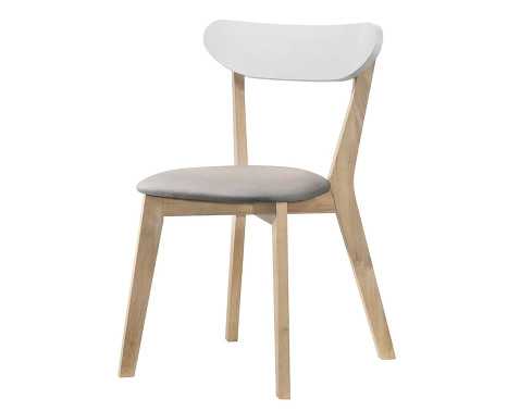 Jídelní židle na masivní dřevěné podnoži je stabilní a působí útulně. Polstrovaný sedák doplňuje pohodlně zaoblená zádová opěrka v bílém provedení.