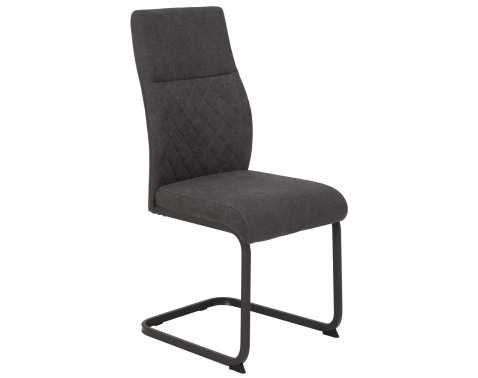 Komfortní jídelní židle na stabilní kovové podnoži je očalouněna měkkou velurovou látkou v barvě tmavě šedá. Stylový design doplňuje kosočtvercový prošev na příjemně tvarovaném opěradle.