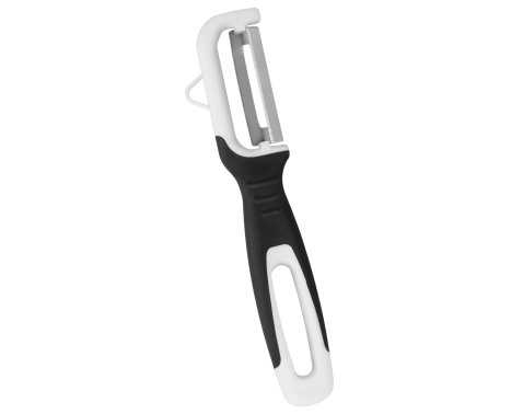 Kuchyňská škrabka v černo-šedém provedení je vybavena čepelí z nerezové oceli, která perfektně oloupe zeleninu nebo brambory. Malá kuchyňská pomůcka s protiskluzovou rukojetí z termoplastu velmi dobře padne do ruky a prsty nekloužou při práci.