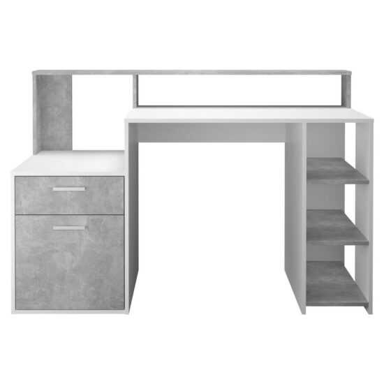 PSACÍ STŮL, šedá, bílá, 139/54/92 cm – ONLINE AT,TYP:3006-001E, – WEIß/BETON LA+TÜR,SCHUBKASTEN – 3OFF.ABLAGEFÄCH/138,5X53,5X92