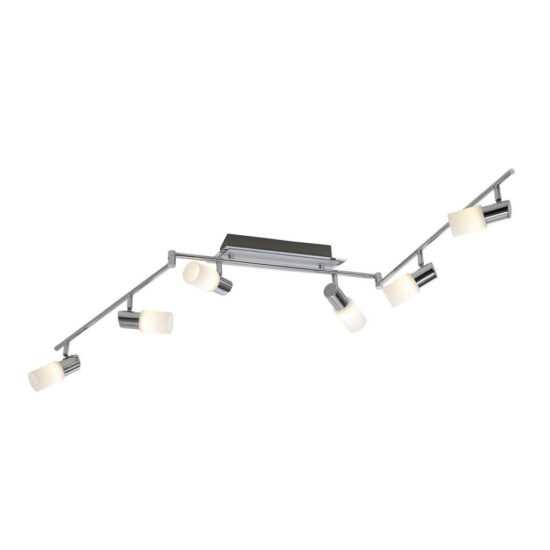 Toto 6bodové stropní LED svítidlo od značky NOVEL si oblíbíte! Harmonie robustní oceli a hedvábného opálového skla v bílé barvě bude u Vás doma vypadat báječně. S délkou cca 150 cm se lampa hodí do větší místnosti. Nastavitelná stínítka posvítí i do rohů. Dostatek světla poskytne 6 žárovek s paticí E14. Bodové stropní svítidlo: stylový a funkční bytový doplněk! Vhodné žárovky jsou k dostání v našem e-shopu a obchodních domech. – KOV/SKLO, BÍLÁ/BARVY CHROMU – BEZ 6XE14 MAX. 40 W – Š/D: 8X150CM