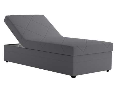 Komfortní postel (válenda) o rozměru lůžka 90×200 cm je vybavena funkcí polohování hlavové části. Obsahuje rošt i pěnovou matraci. Očalouněna příjemně měkkou látkou v odstínu středně šedá.