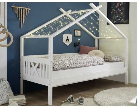 Atraktivní postel se střešním rámem je skvělou inspirací pro zařízení pokoje dětí i teenagerů – zapojte svou kreativitu a doplňte rám postele například látkovou střechou, síťovinou, světelným řetězem anebo třeba zavěšením hraček, které potěší na pohled. Můžete tak snadno zútulnit prostředí pro pohodový spánek. Postel o velikosti lůžka 90×200 cm je vyrobena z bílého lakovaného dřeva a je tak vhodná pro kluky i pro holky.