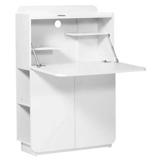SEKRETÁŘ – ONLINE AT,TYP:21A18, KP+FR: – MDF WEISS HG,KLAPPB. – ARBEITSPLATTE,LAPTOP-FACH, 4EB