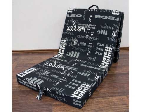Skládací matrace pro příležitostné spaní návštěv by neměla chybět v žádné domácnosti. Látkový potah se vzorem nápisů.