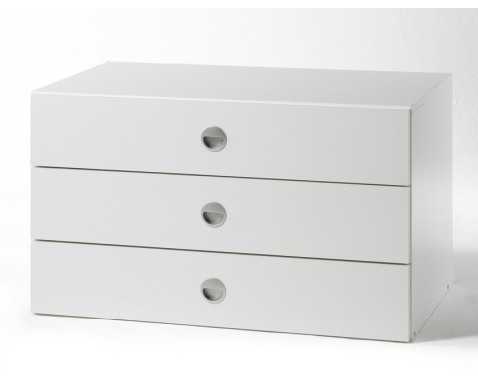 Vnitřní zásuvkový element o šířce 82,5 cm v bílém provedení pro umístění do vnitřního prostoru šatní skříně Cordoba. Získáte tak praktický doplněk pro přehledné ukládání drobného prádla uvnitř skříně. Tento zásuvkový element můžete případně umístit i do jakékoliv jiné skříně.